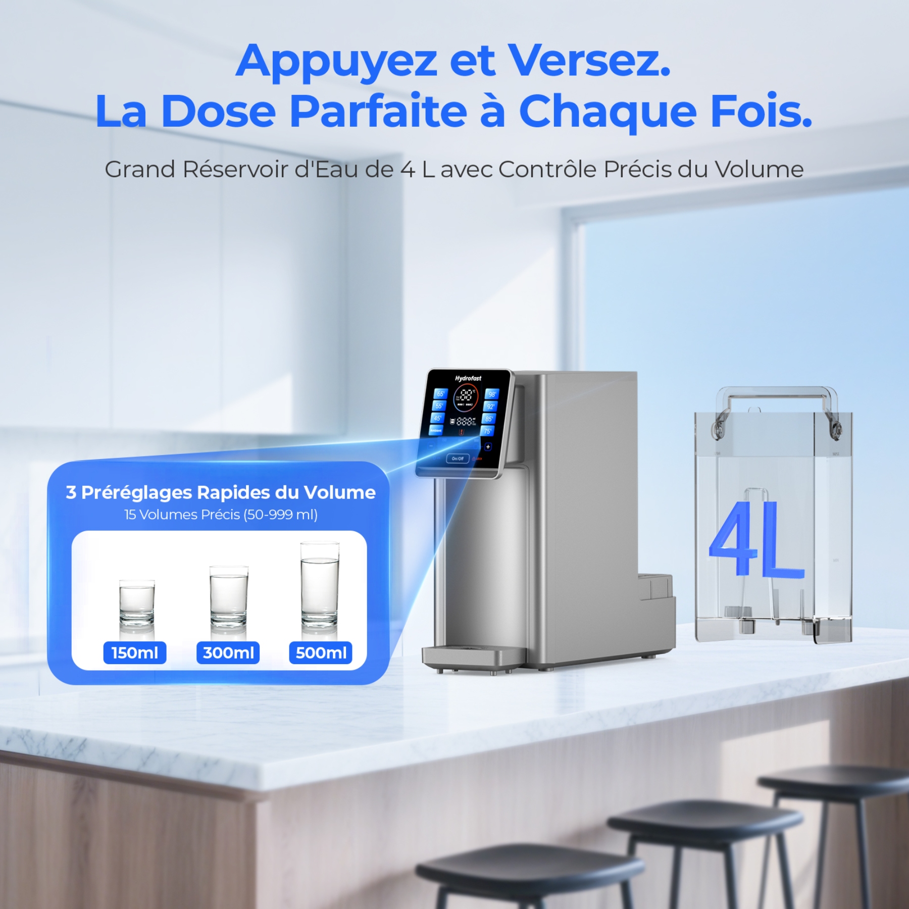 Hydrofast W100 Purificateur d'eau pour comptoir – 8 températures, filtration 6 étapes RO + UV, réservoir 4 L