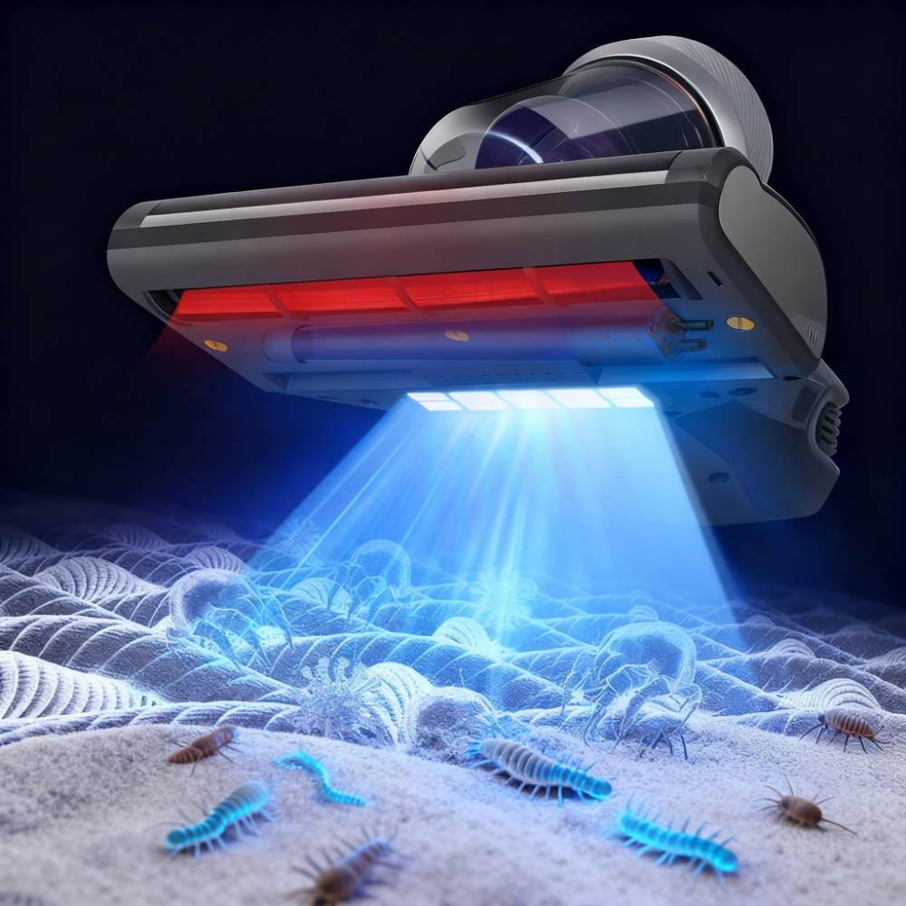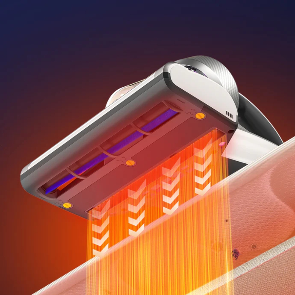 - UV 253,7nm + 60°C : Double action destructrice sur acariens et bactéries.