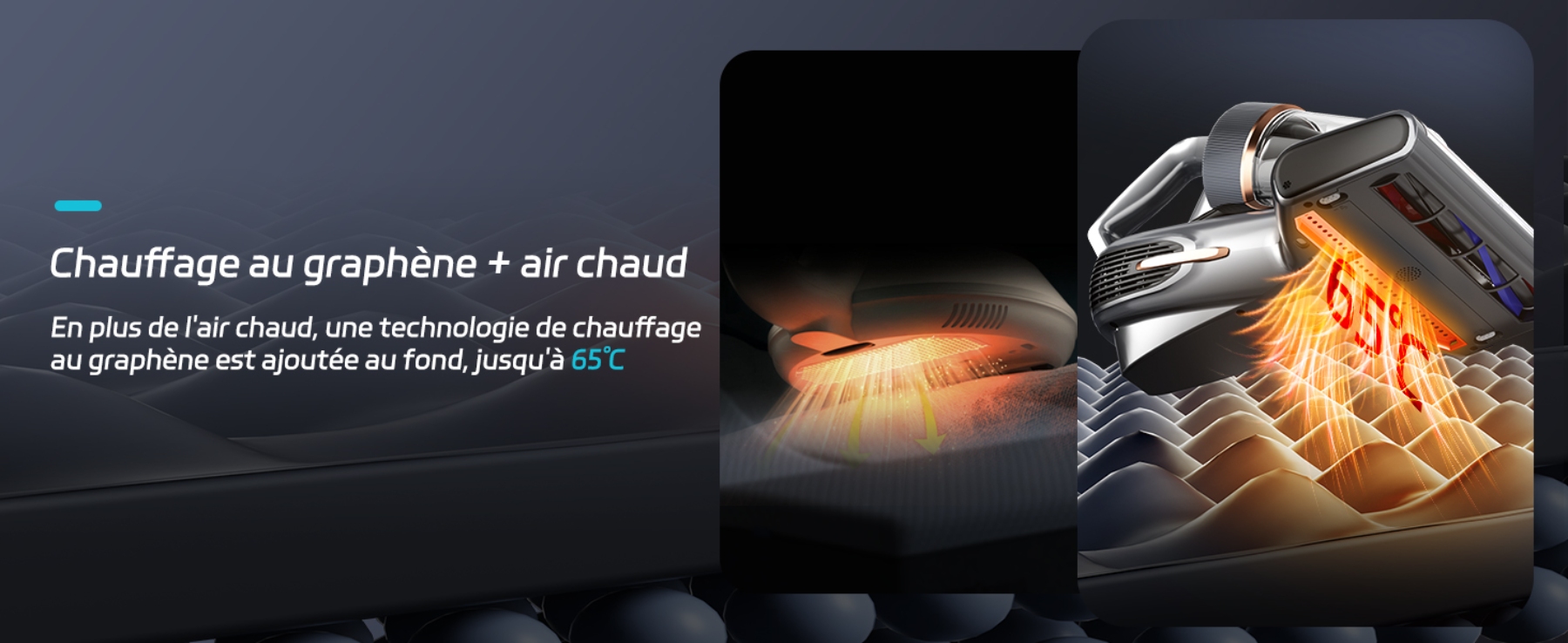 - Base chauffante en graphène : Chaleur pénétrante jusqu'à 65°C.