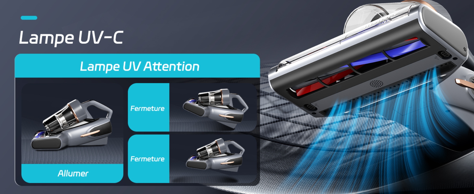 - Lumière UV : Destruction des acariens et bactéries.