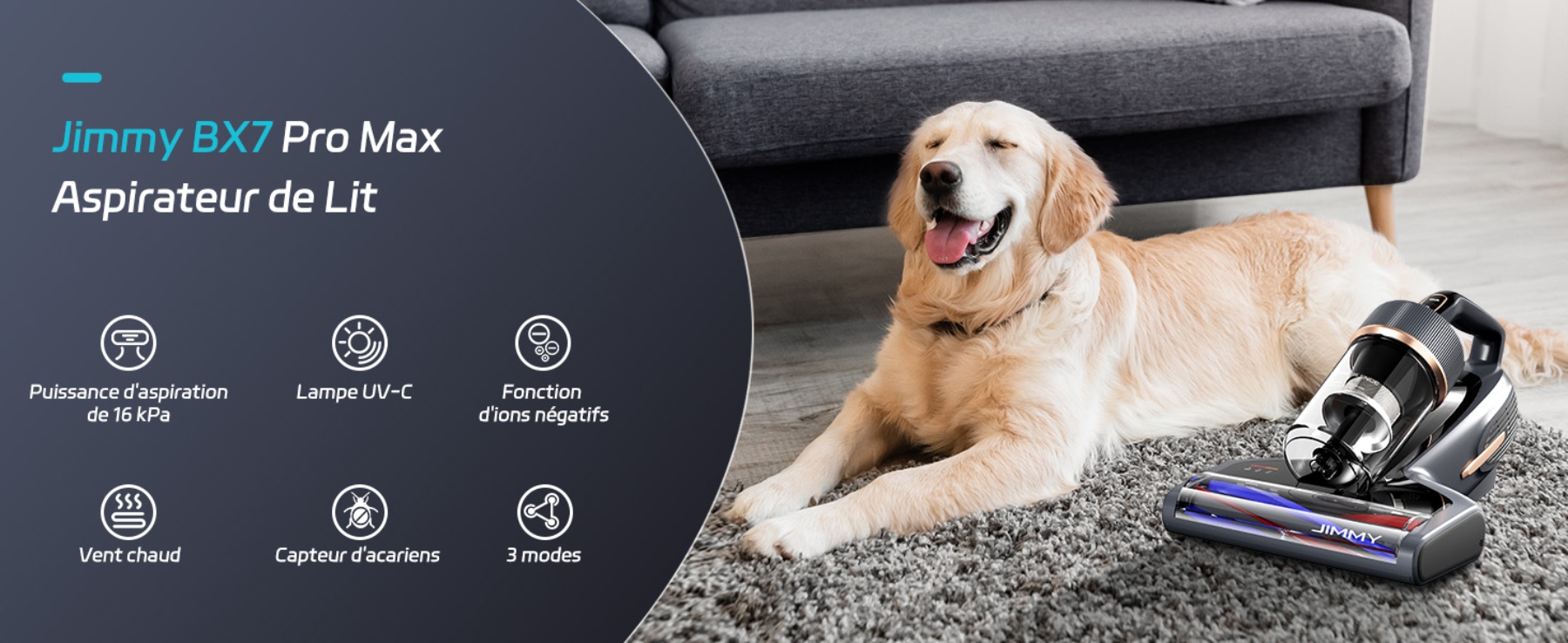 JIMMY BX7 Pro Max Aspirateur Anti-Acariens, 550 W, Chaleur Au Graphène À 65 °C, UV, Capteur LED, Certifié Allergy UK