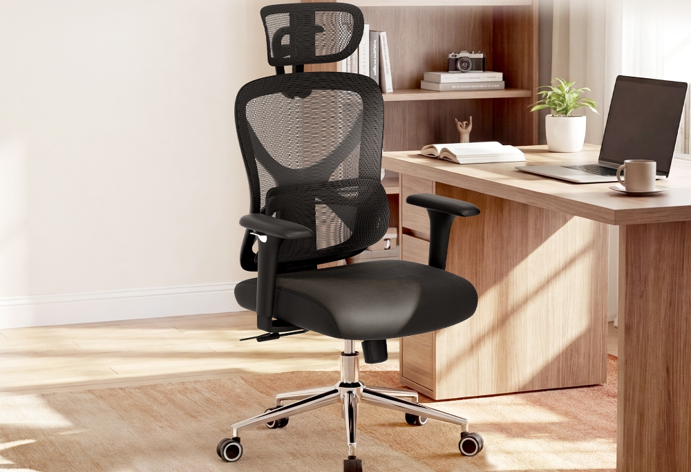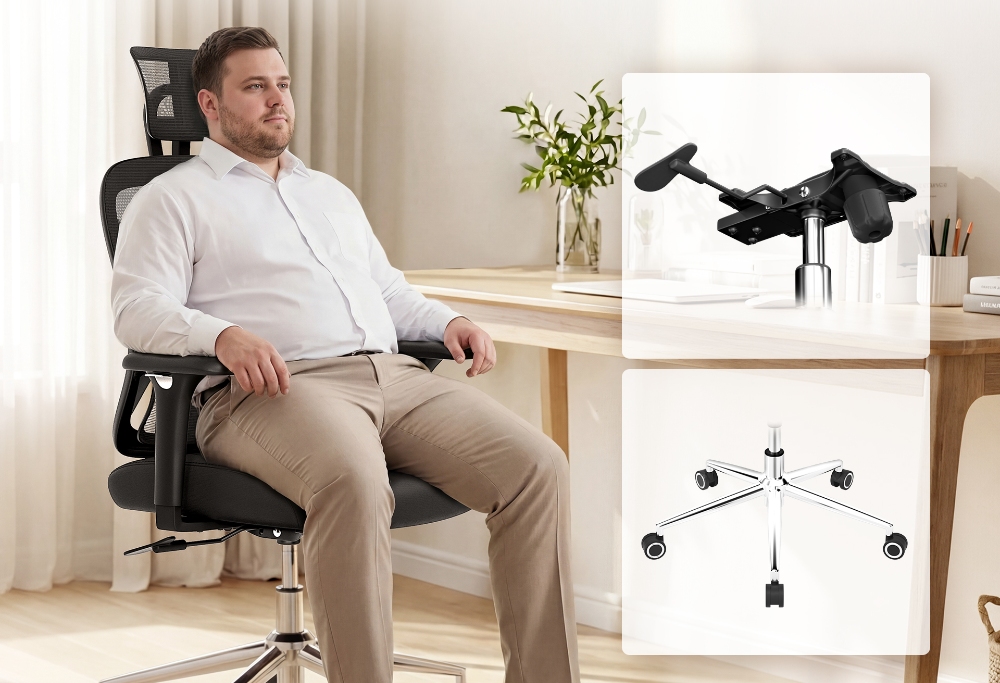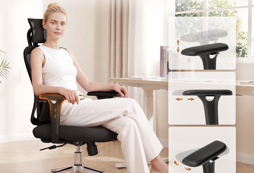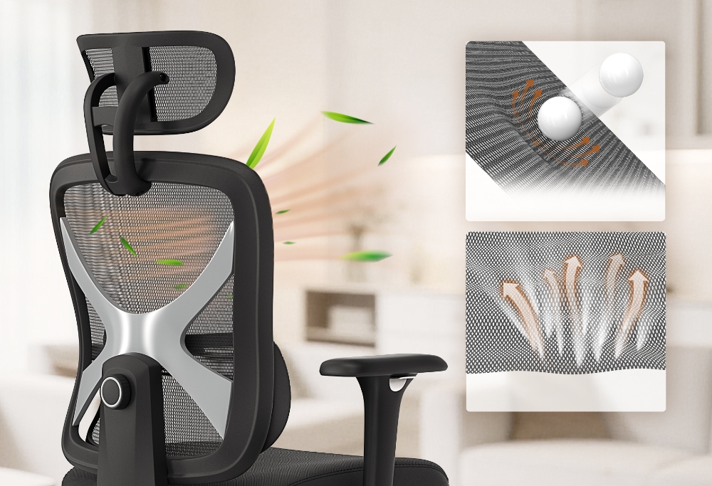 ACGAM CG-5345M Chaise De Bureau Ergonomique – Maille Respirante, Accoudoirs 3D Et Repose Pieds, Rotation Fluide À 360°