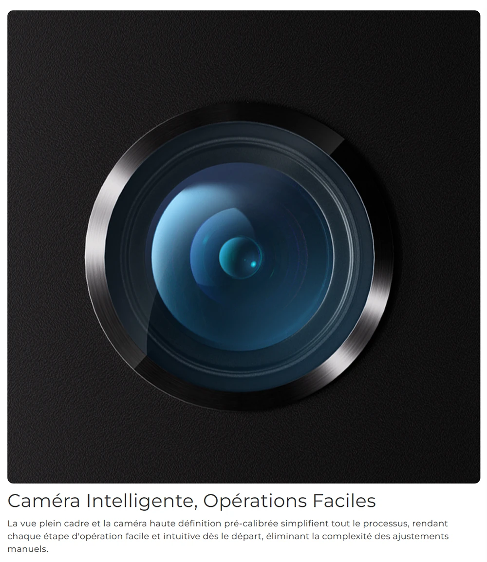 - Vision Intelligente : Caméra HD intégrée pour la reconnaissance automatique des matériaux et l'ajustement des paramètres sans test manuel.
