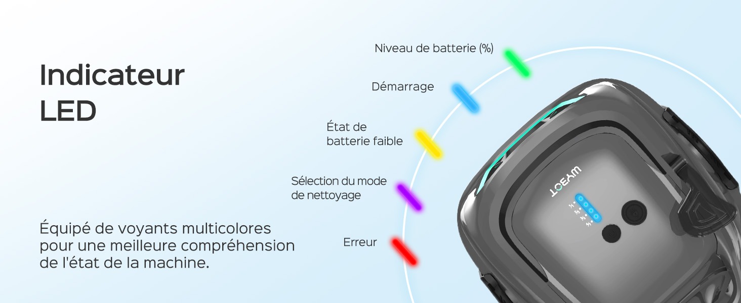 Oui. Si l'eau est extrêmement sale ou contient une grande quantité de particules en suspension, cela peut affecter l'efficacité de nettoyage et le fonctionnement normal du robot. Nous vous recommandons de faire fonctionner votre système de circulation et de filtration au préalable afin d'améliorer la clarté de l'eau avant d'utiliser le robot.
