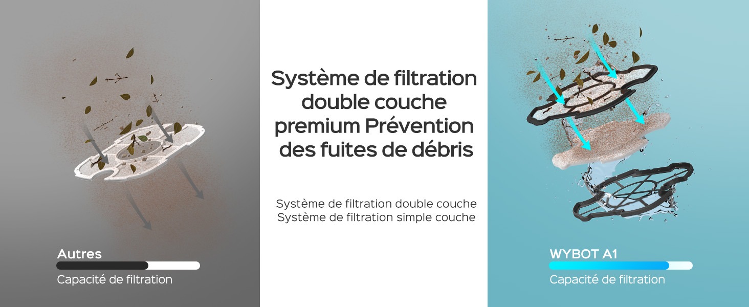 Non. Le robot est conçu pour le nettoyage des débris, et non pour la gestion de la qualité de l'eau ou la filtration ultra-fine. Pour une eau saine et claire, il doit être utilisé en complément du système de circulation et de filtration de votre piscine, ainsi que d'un traitement chimique approprié.