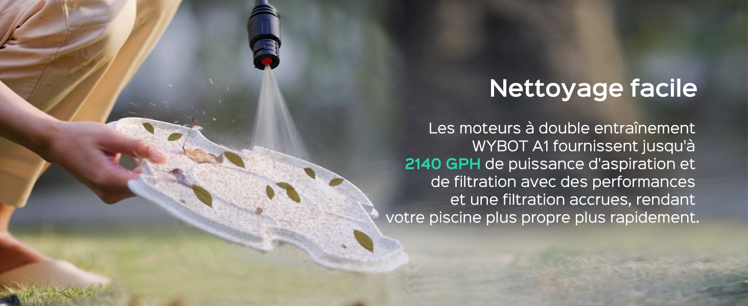 WYBOT A1 Robot aspirateur de piscine sans fil double filtre autonomie de 120 minutes charge rapide en 2,5 heures pour piscin