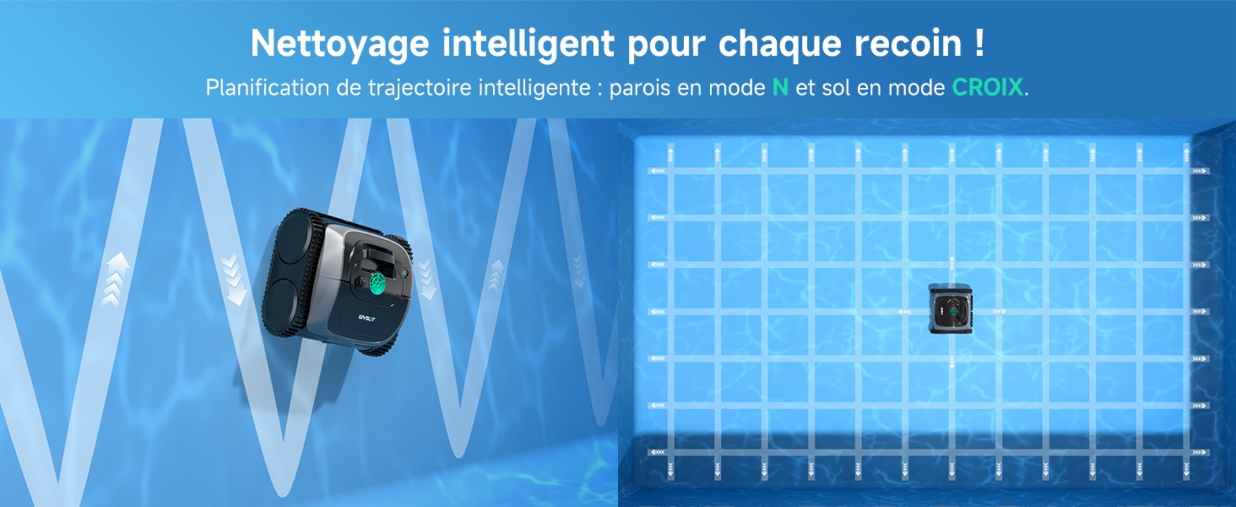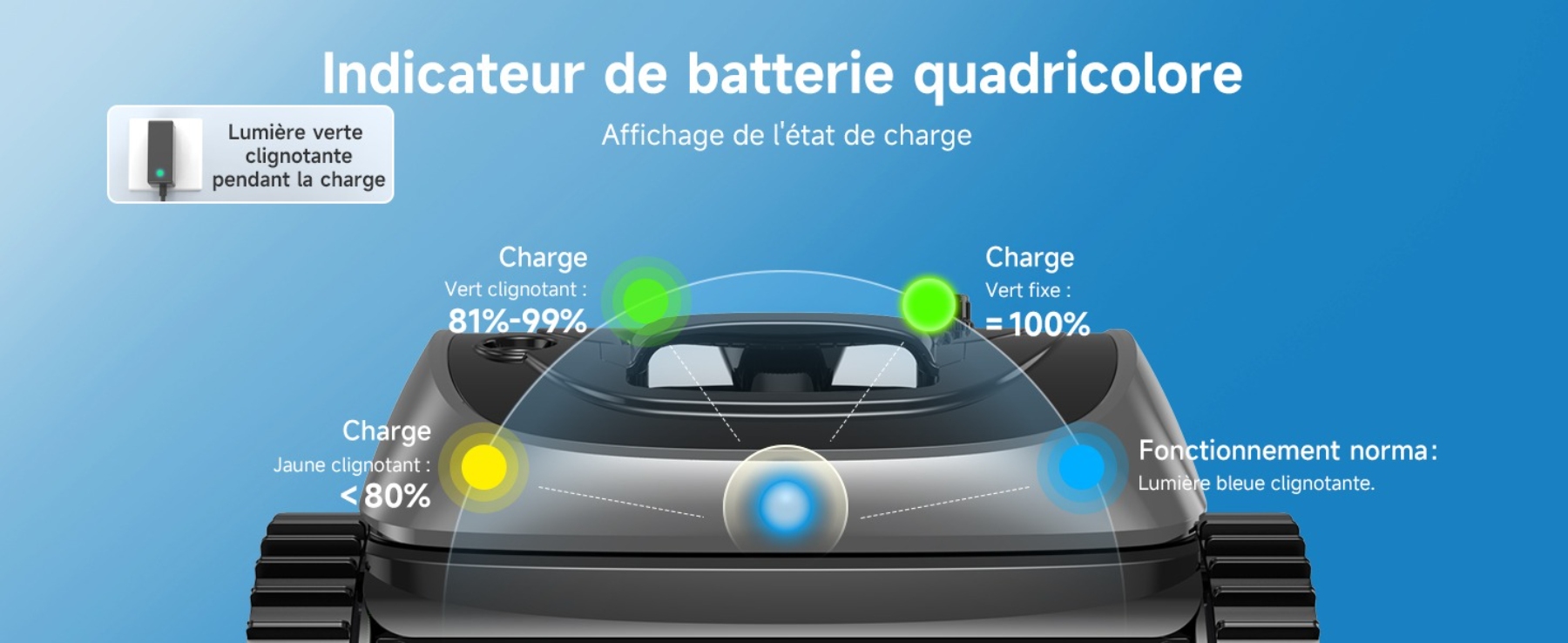 Oui. Si l'eau est extrêmement sale ou contient une grande quantité de particules en suspension, cela peut affecter l'efficacité de nettoyage et le fonctionnement normal du robot. Nous vous recommandons de faire fonctionner votre système de circulation et de filtration au préalable afin d'améliorer la clarté de l'eau avant d'utiliser le robot.