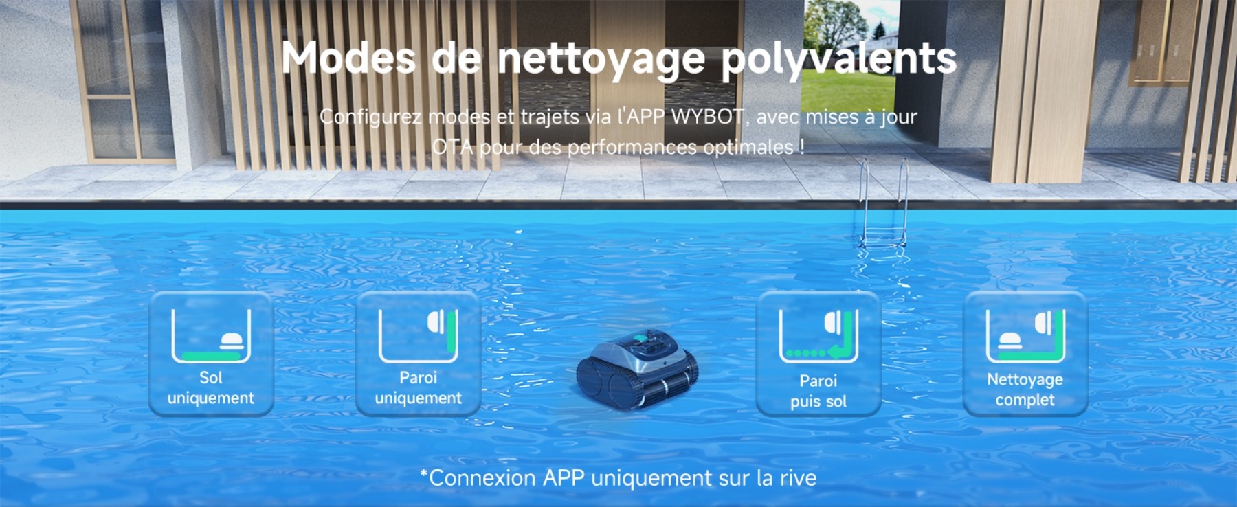 WYBOT C1 Nettoyeur de piscine robotisé sans fil autonomie de 150 minutes escalade des murs planification intelligente