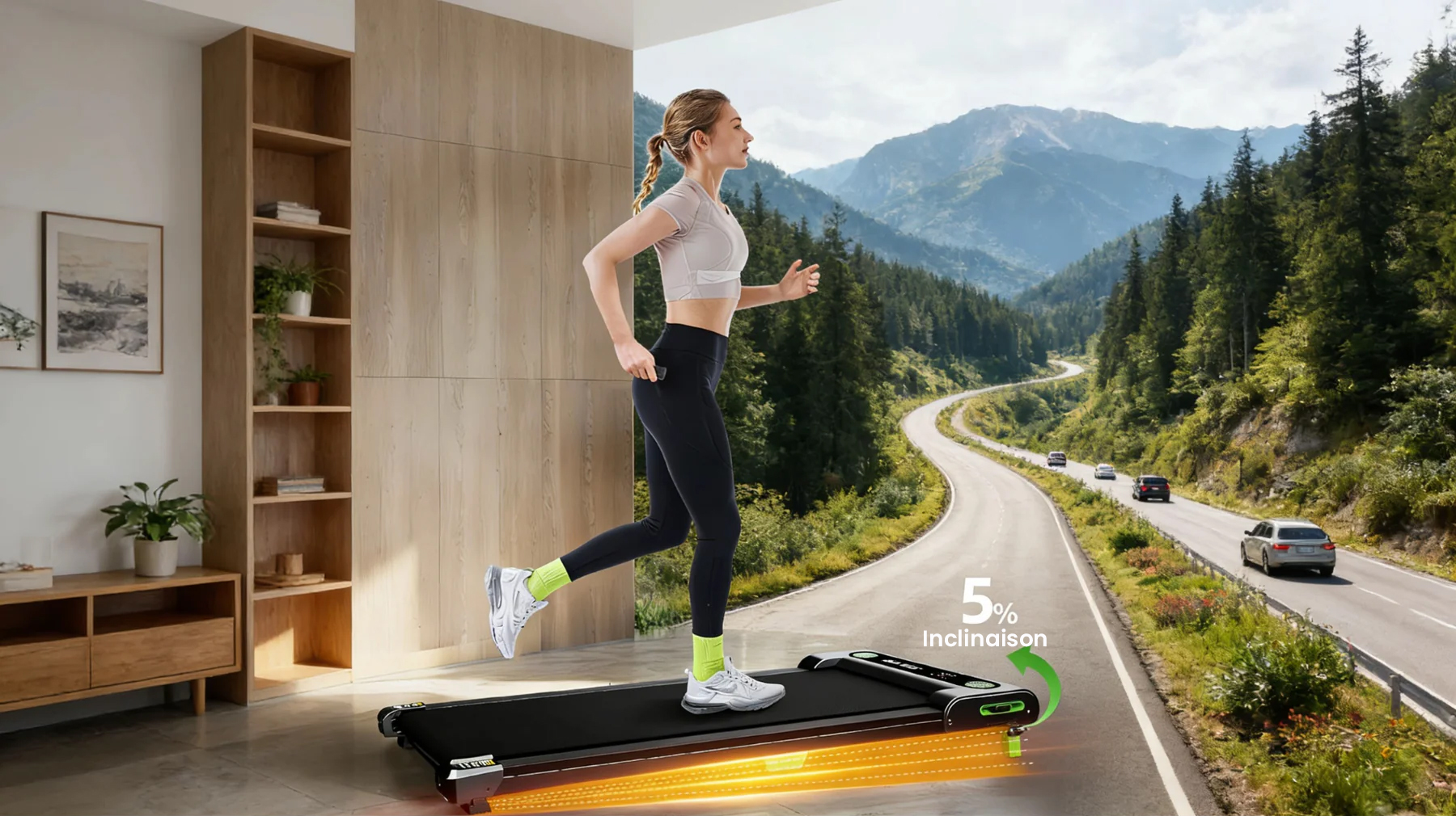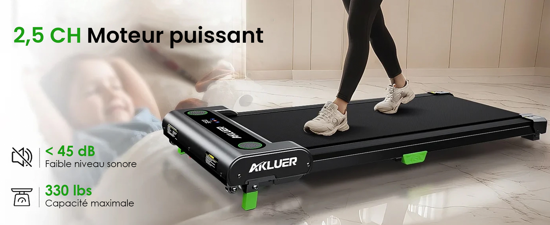 Akluer 480l-A Tapis De Course Sous Bureau Inclinable, Tapis De Course De 2.5hp Avec Télécommande, Affichage LED, Capacité Maxima
