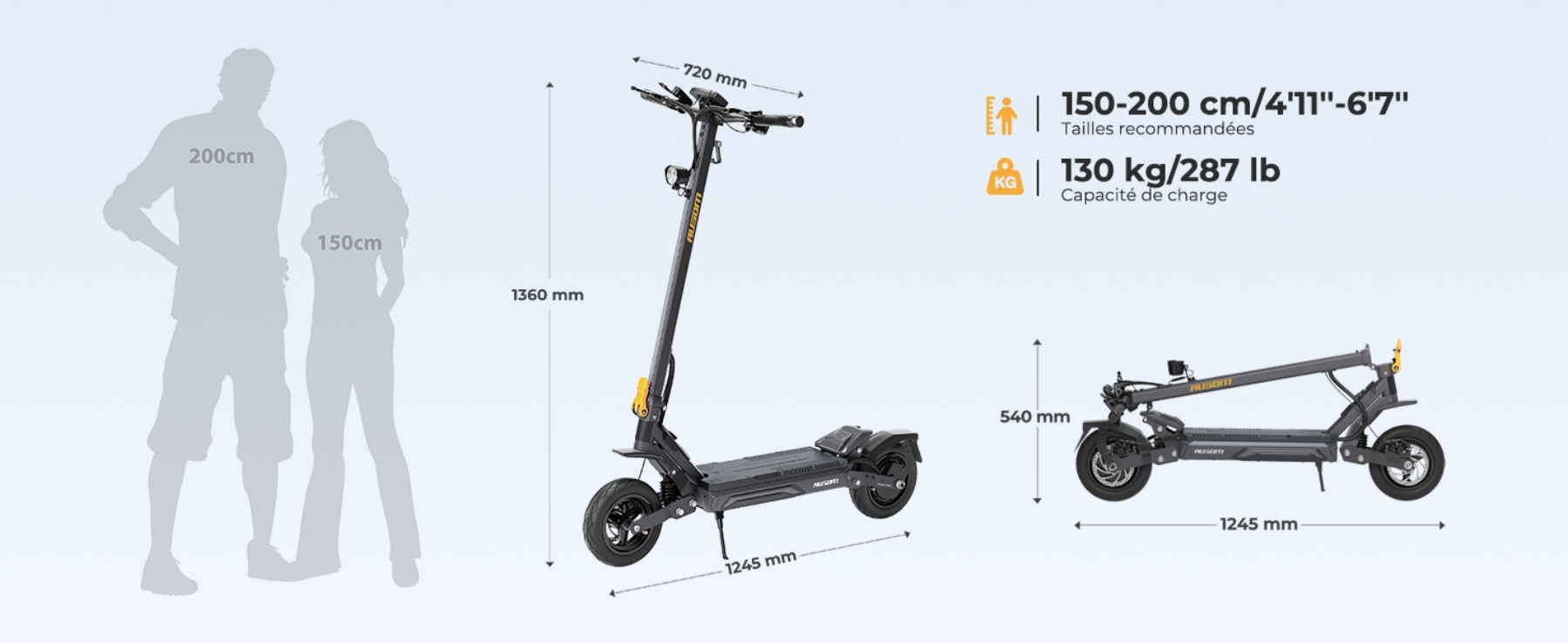 - 1245×720×1360 mm(déplié) 1245×720×540 mm(plié)