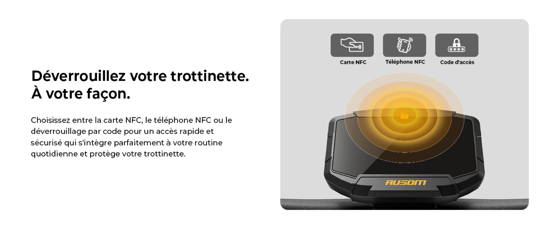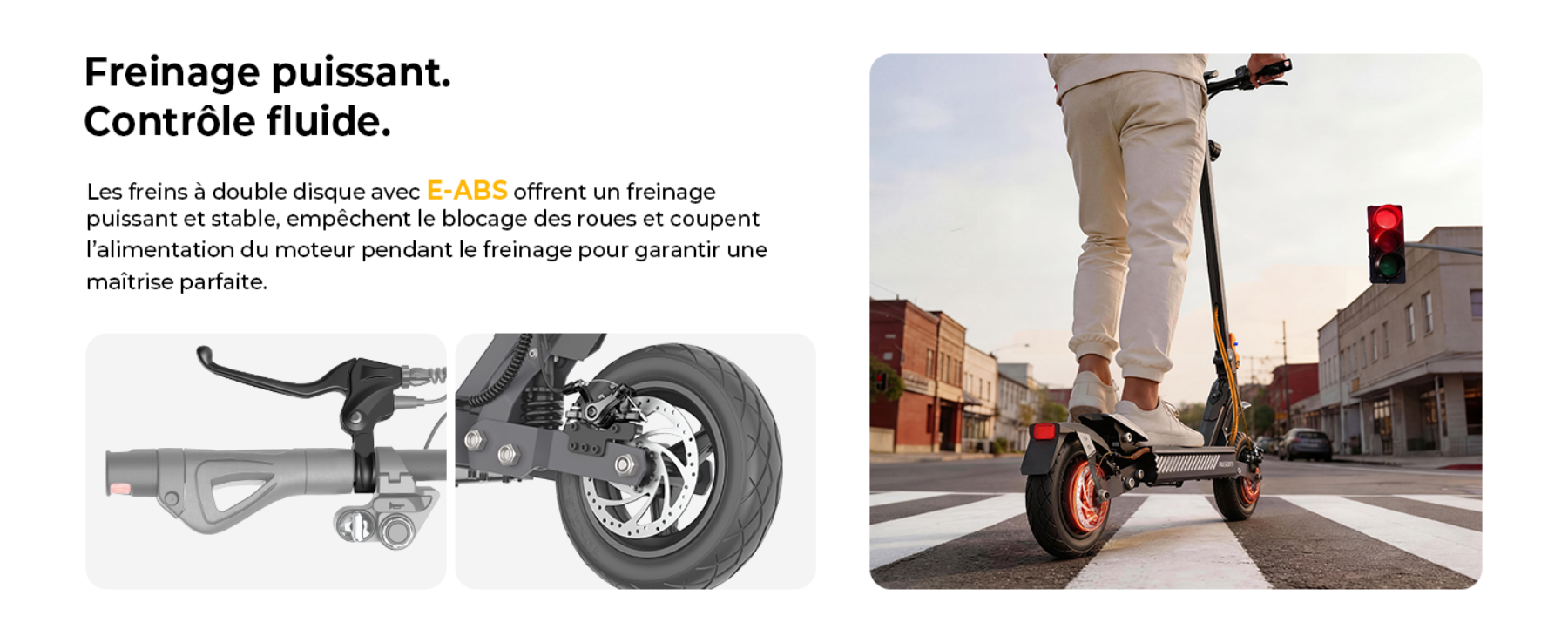 - Sécurité haute technologie : Double système antivol (NFC et code) et freinage sécurisé E-ABS à double disque.