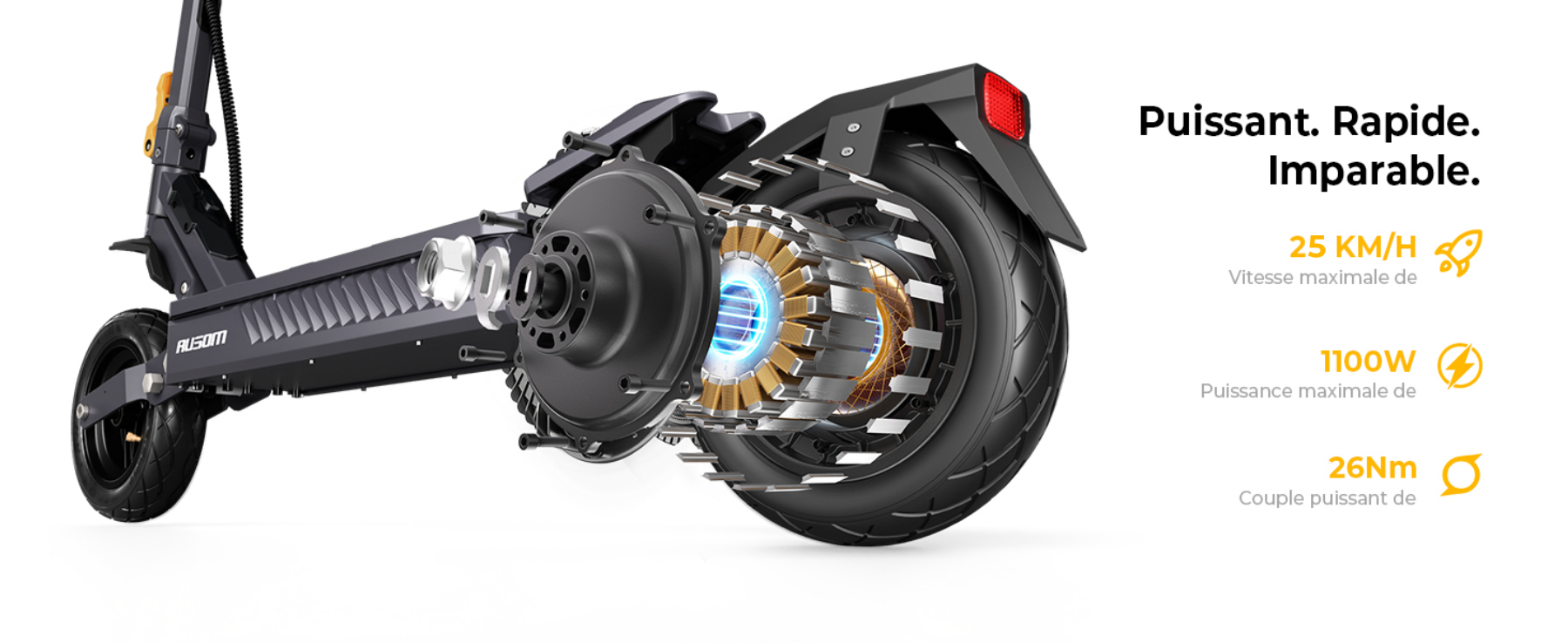 Oui, la Gosoul 2 est propulsée par un moteur performant délivrant une puissance en crête de 1100W et un couple de 26 Nm