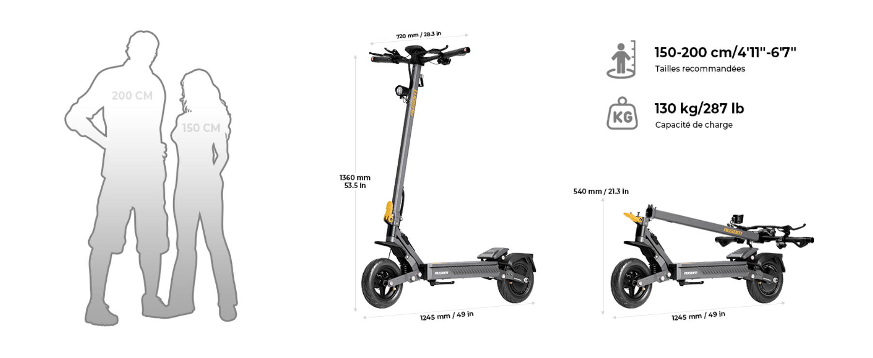 - 1245×720×1360mm(déplié) 1245×720×540mm(plié)