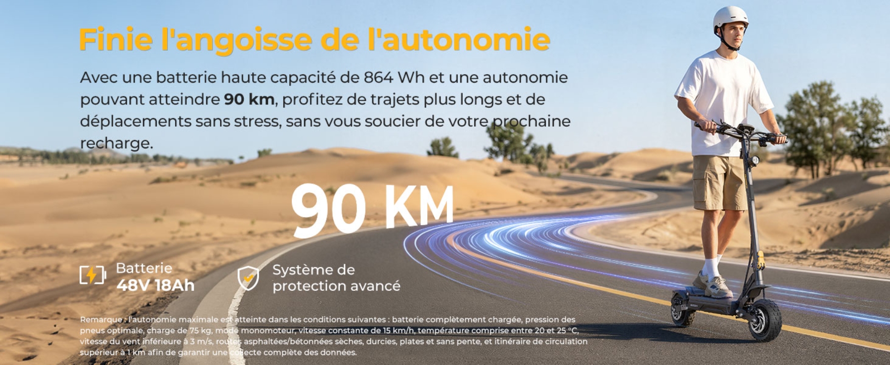 - Jusqu'à 90 km d'autonomie : Batterie haute capacité (864 Wh) pour de longs trajets sans souci.