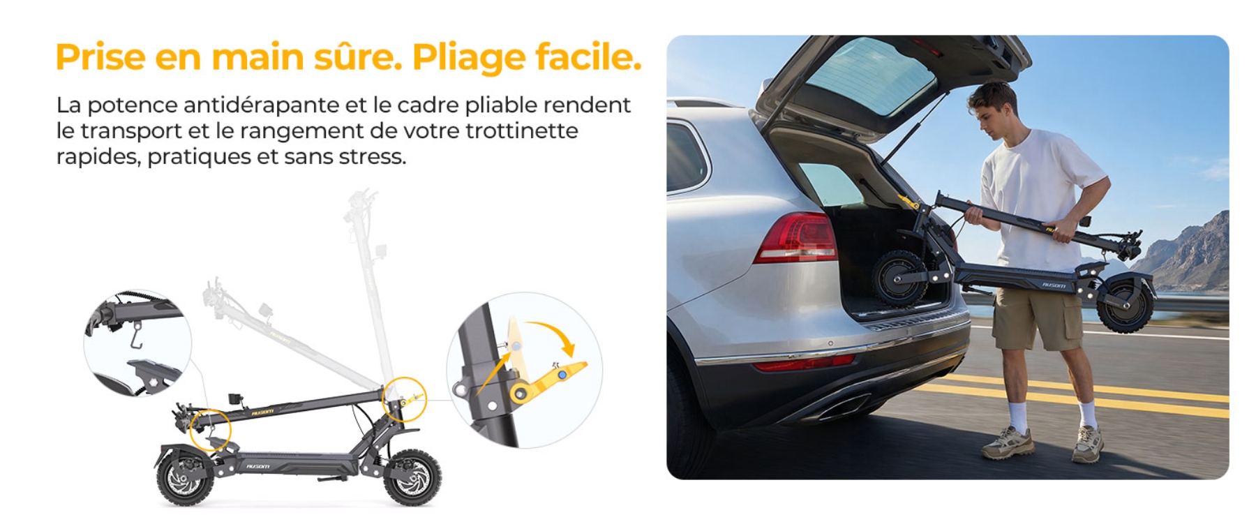 - Sécurité connectée complète : Déverrouillage anti-vol par NFC/code PIN et système d'éclairage intégral.