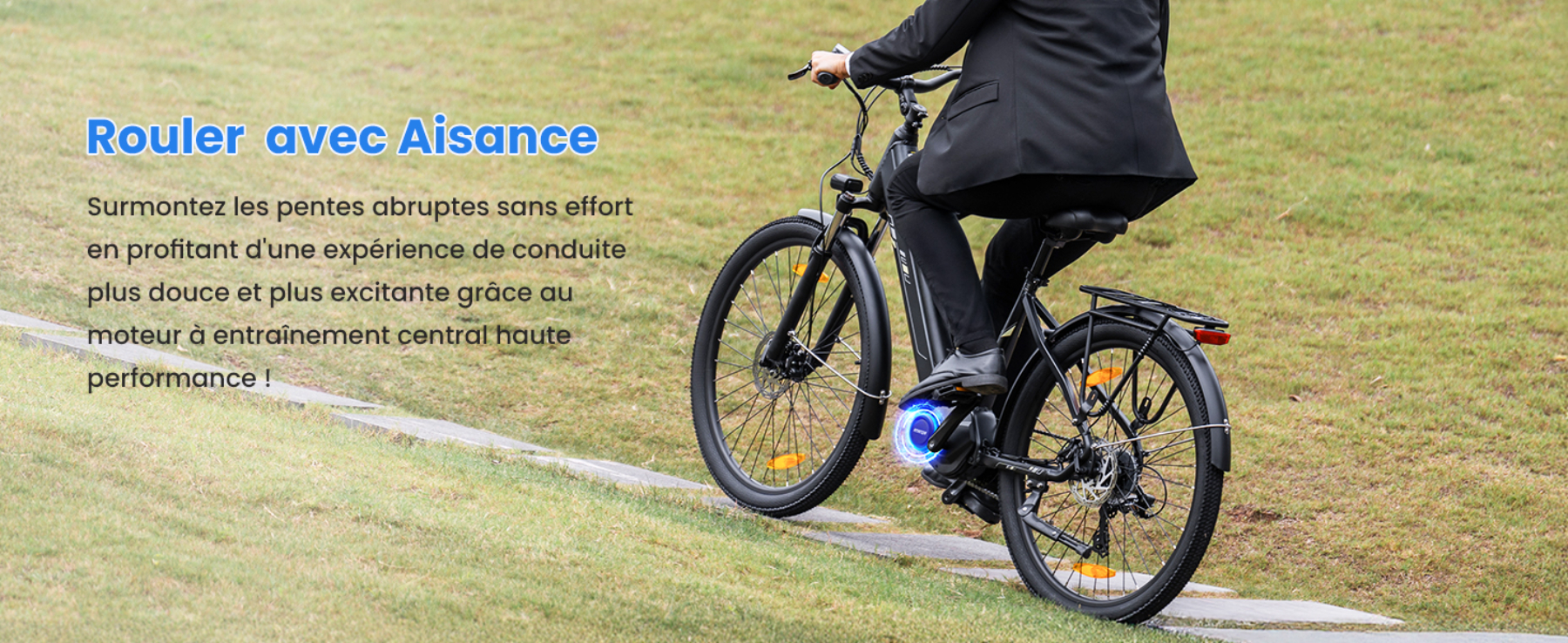 Situés au centre du cadre, près des pédales, les moteurs pédaliers assurent une répartition idéale du poids et une grande stabilité de conduite. En exploitant le système de transmission du vélo, ils maximisent l'efficacité énergétique pour offrir une plus grande autonomie. De plus, ces moteurs génèrent un couple plus élevé, ce qui améliore la capacité de franchissement des côtes et les performances sur divers types de terrains.