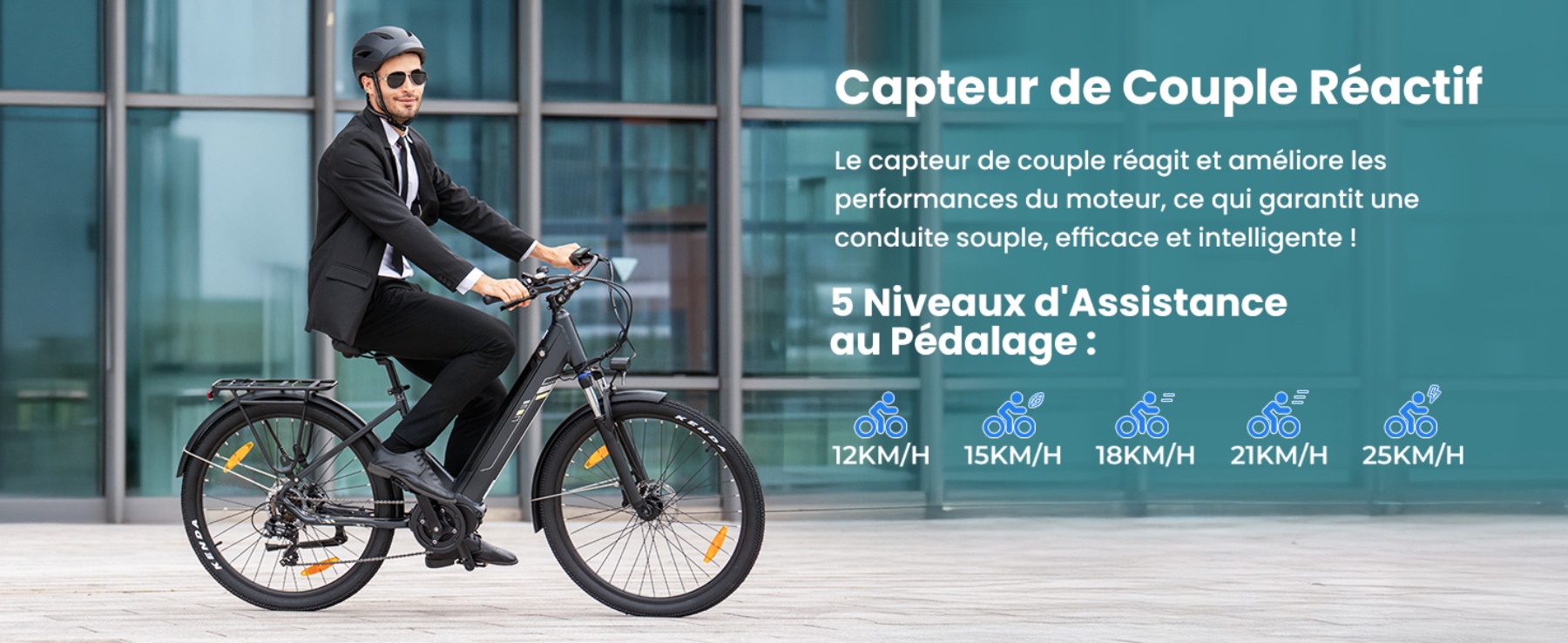 - du mode d'assistance : 12/15/18/21/25 km/h (niveau 1 à 5)