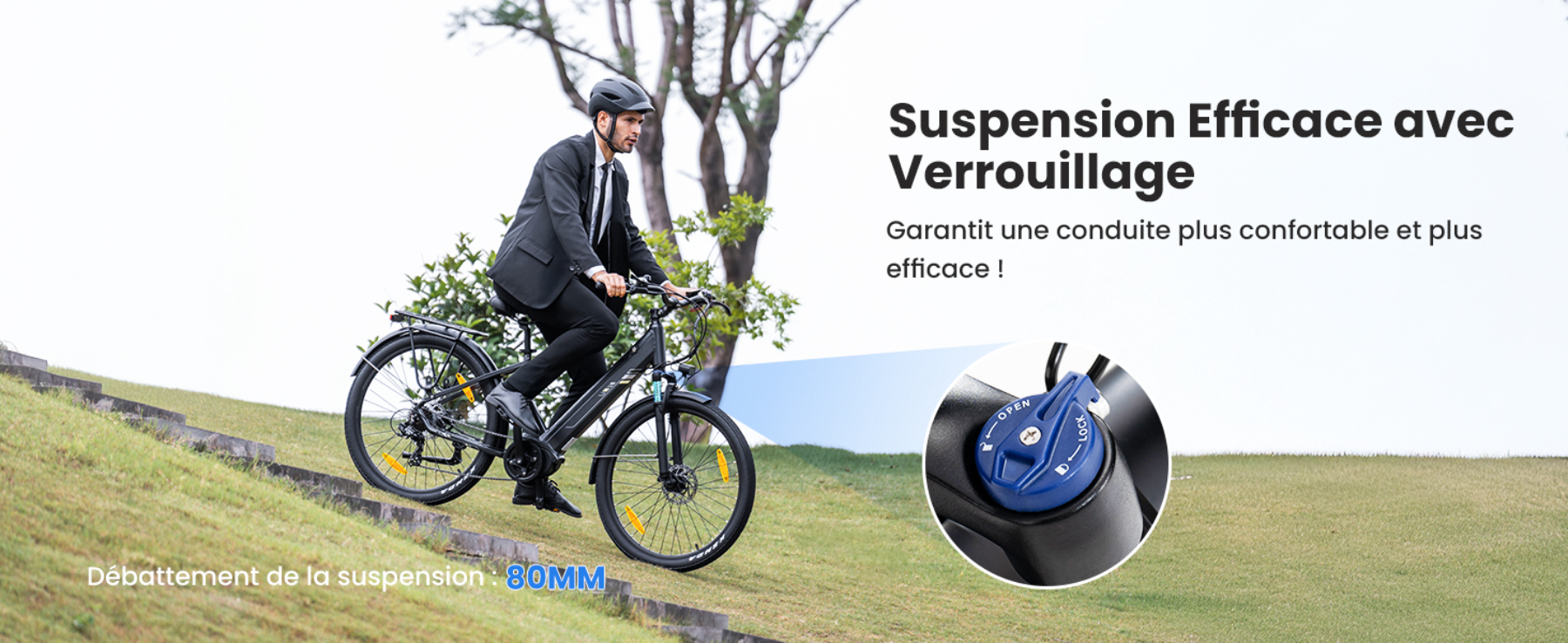 Le vélo électrique Urbano 3 est doté d'une fourche de suspension robuste qui minimise les vibrations, absorbant ainsi les bosses et les chocs rencontrés sur la route.Cette fonctionnalité vous permet de profiter d'une conduite douce et confortable.Grâce à la conception de verrouillage, vous pouvez bloquer la suspension pour une conduite rapide sur les routes plates et la débloquer pour une conduite confortable sur les chemins accidentés.Que ce soit sur des sentiers accidentés ou des routes lisses, l'Urbano 3 offre une conduite stable et confortable, améliorant votre plaisir de faire du vélo.