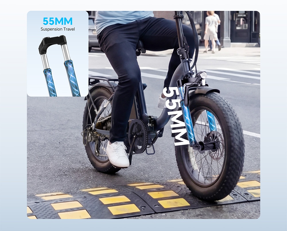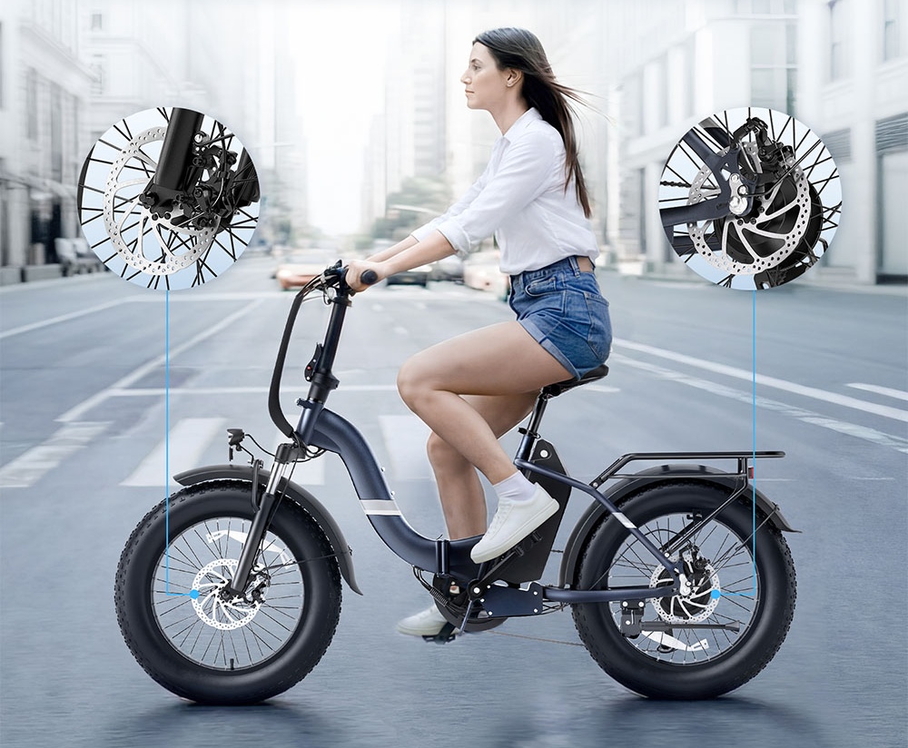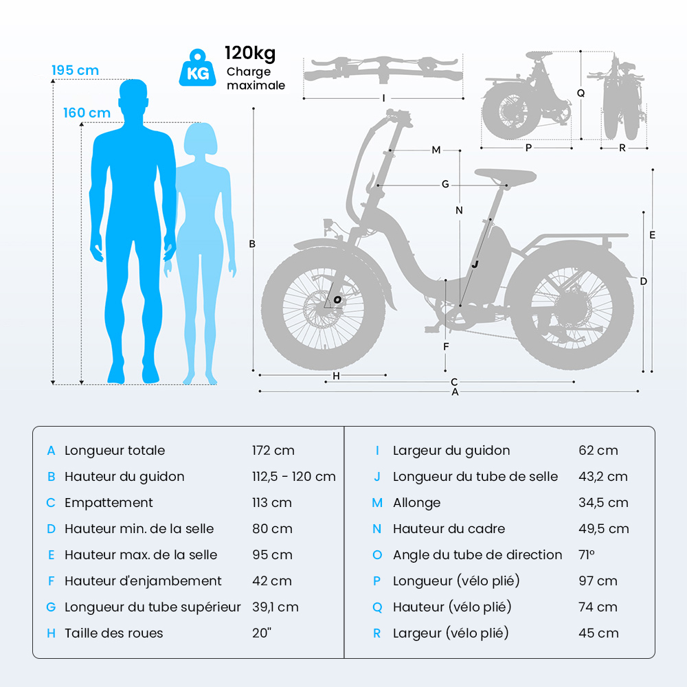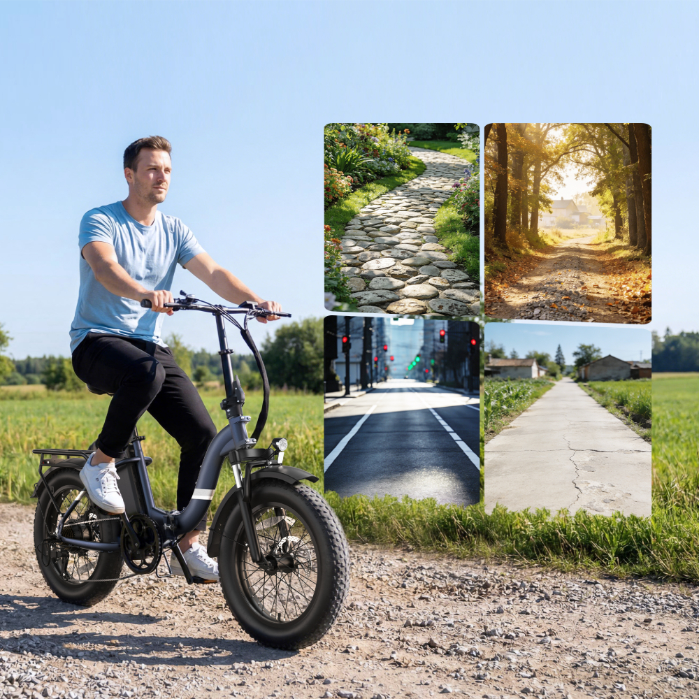 - Pneus larges tout-terrain 20x4.0" : Une adhérence et une stabilité optimales sur tous les terrains : asphalte, sable, neige et gravier.