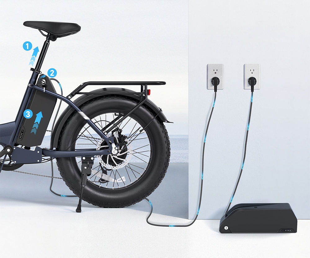 Batterie haute densité de 720Wh (48V 15Ah) pour une autonomie exceptionnelle. Batterie amovible avec verrou de sécurité pour une recharge pratique et un remplacement facile.