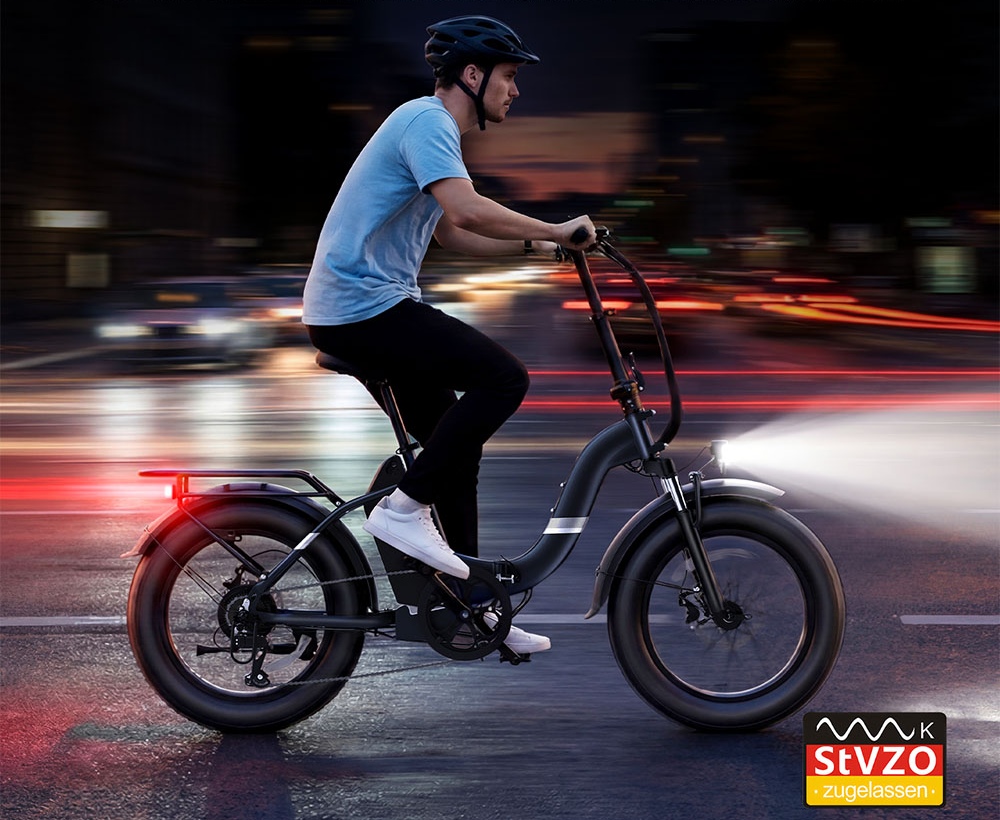 Éclairage avant/arrière certifié StVZO pour une visibilité sans éblouissement. Double freinage : frein à disque mécanique et frein électrique pour une puissance d'arrêt fiable.