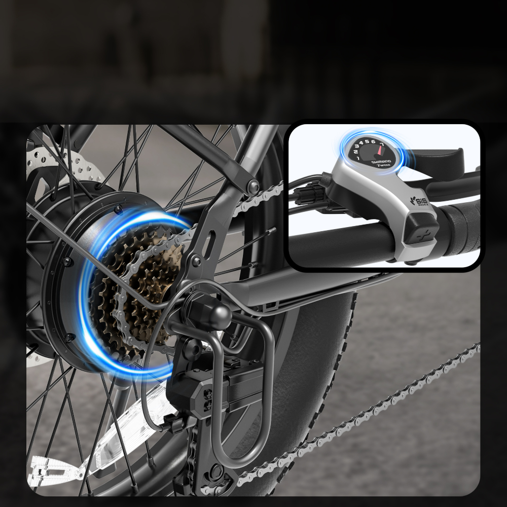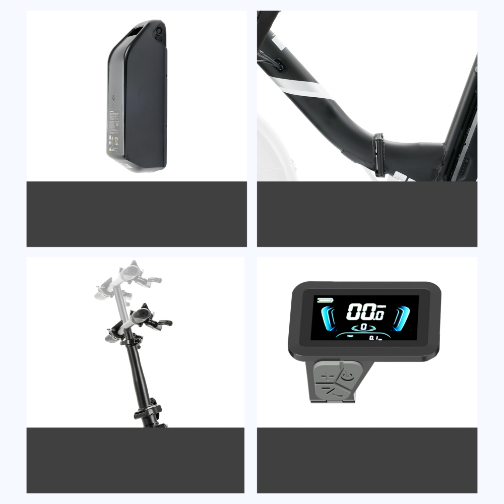 Le vélo électrique Touroll est équipé d'un système de vitesses Shimano à 7 rapports pour un changement de vitesse facile sur divers terrains. L'écran LCD vous permet de surveiller et d'ajuster les paramètres en un seul coup d'œil. La conception du cadre à enjambement bas permet de monter et de descendre du vélo avec élégance et stabilité, facilitant ainsi les arrêts rapides, le transport de sacs ou la conduite en jupe ou en robe, améliorant ainsi la sécurité et la praticité au quotidien.