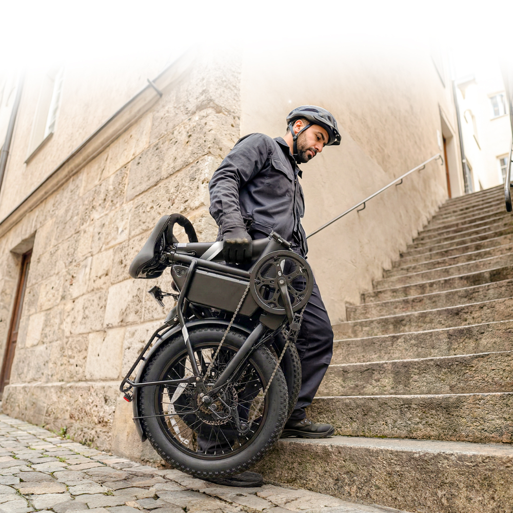 Profitez d'une grande portabilité grâce au mécanisme de pliage intuitif du S3. Parfait pour les trajets urbains, son design compact se replie en quelques secondes pour un rangement facile dans les transports publics ou dans les espaces restreints. Au-delà de la commodité, le porte-bagages arrière intégré peut supporter jusqu'à 20 kg de marchandises, permettant des livraisons en appartement et des transferts dans les transports publics sans effort, idéal pour les livraisons de nourriture et les coursiers en déplacement. Roulez, pliez et partez à l'aventure avec le polyvalent S3.
