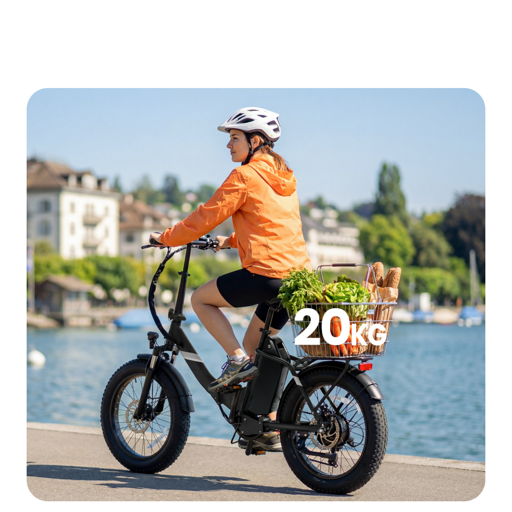 - Pliage rapide : Son design compact se plie en quelques secondes et le porte-bagages arrière supporte 20 kg.