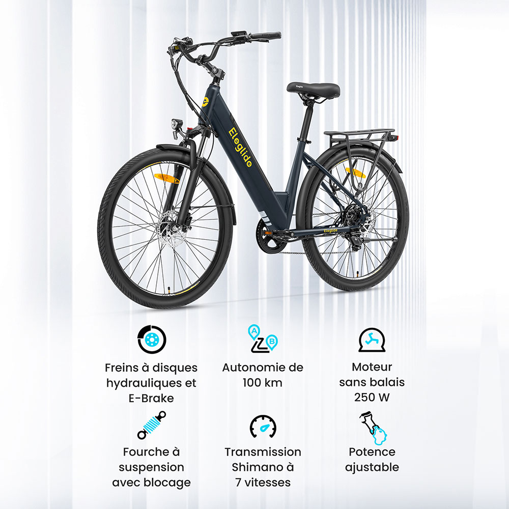 Eleglide T2 Vélo électrique 27.5" - Freins hydrauliques, batterie 36 V 13 Ah (468 Wh), autonomie 100 km