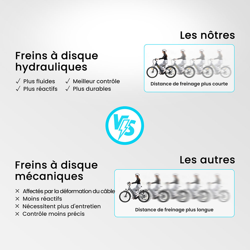 - Freinage hydraulique puissant : Freins à disque hydrauliques haut de gamme, distance de freinage réduite de 30% pour un contrôle et une sécurité optimaux. Système durable et sans entretien.